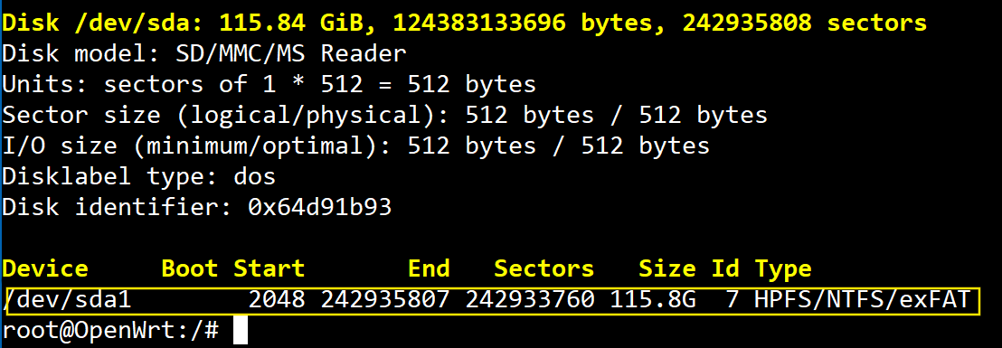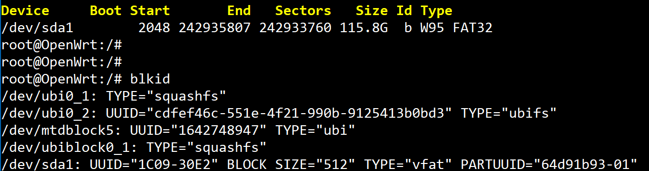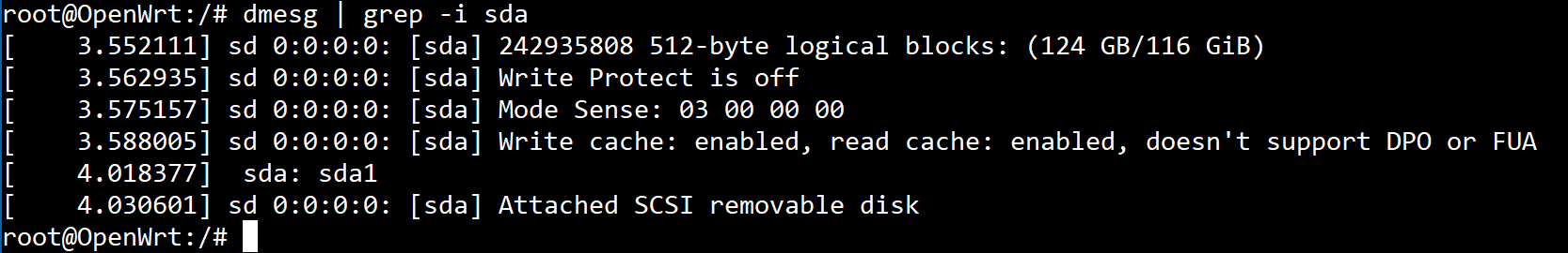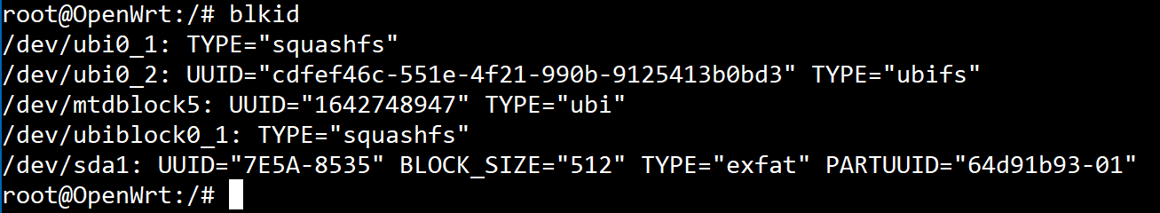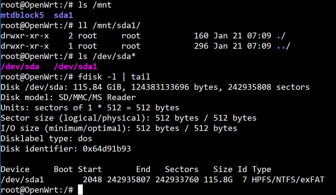 Power on with USB device inserted, now it has /mnt/sda1 at the beginning.