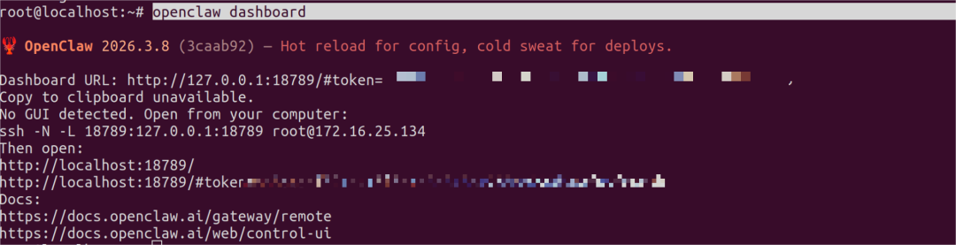 Then enter “openclaw dashboard” in another terminal.