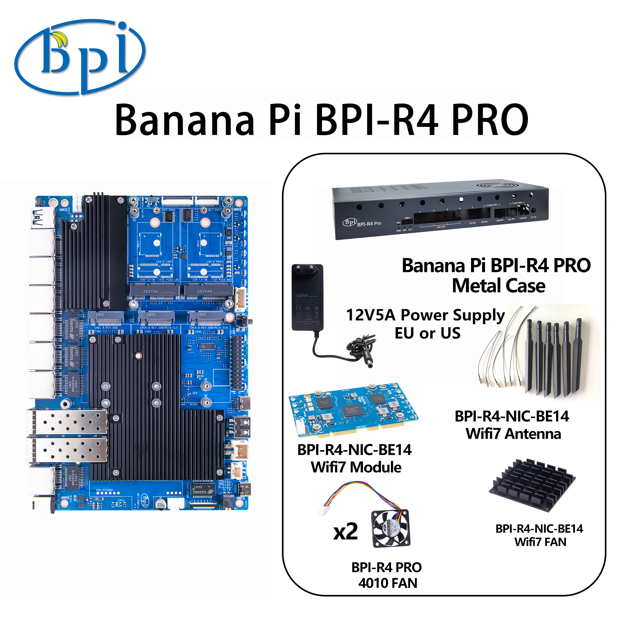 Note: BPI-R4 Pro will support Developer kits and open-source products. However, the packaging, shells, heat sinks, etc. will be available later. If you need to purchase the kits and products, please do so later. We will inform you in a timely manner once they are ready.