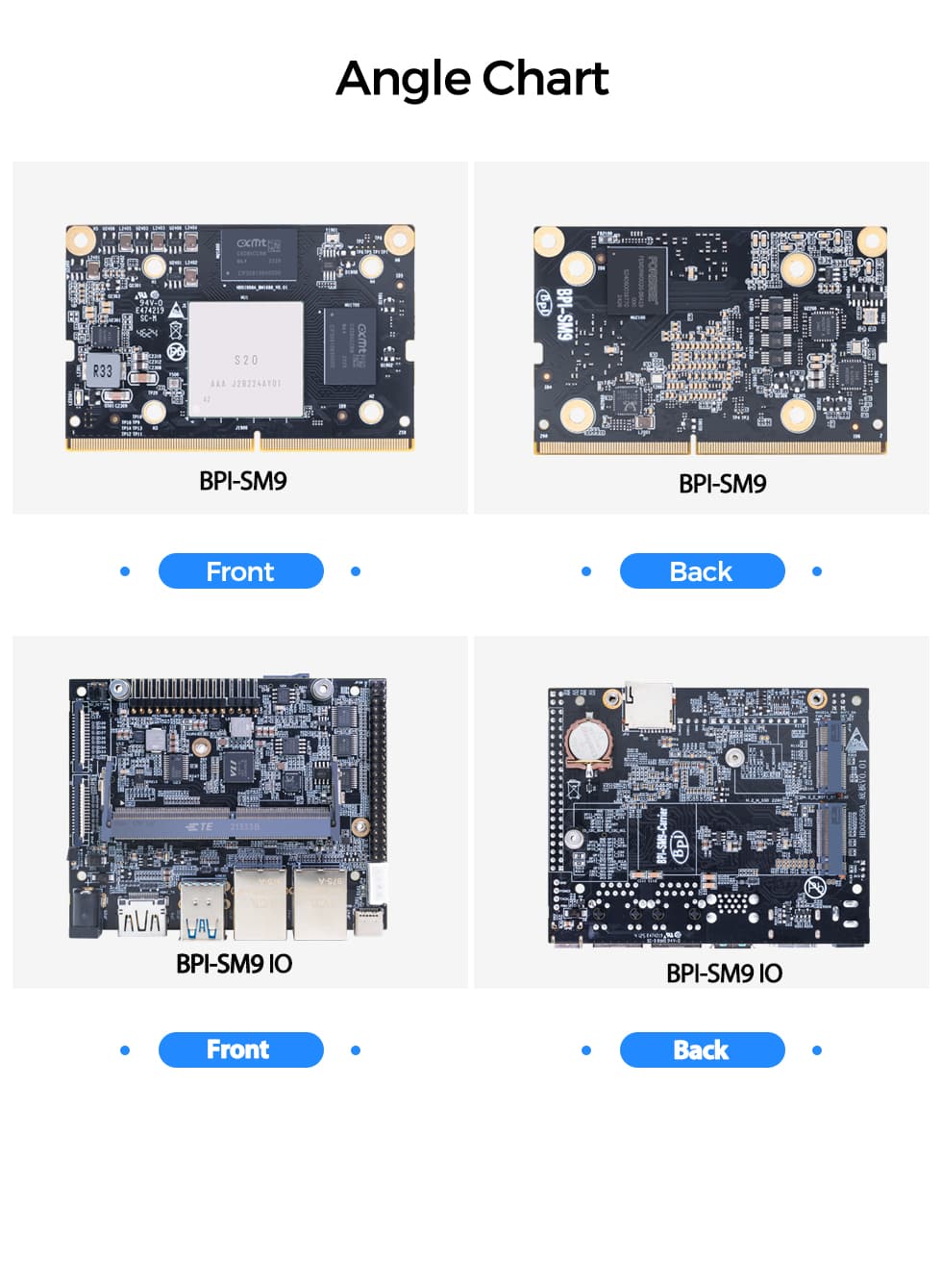 Banana Pi BPI-SM9 16-ENC-A3 deep learning computing module is equipped with the highly integrated computing technology processor BM1688 8 Core ARM CA53 1.6GHz, 8GB LPDDR4,32GB eMMC onboard.which has low power consumption, strong computing power, rich interfaces and good compatibility. Support INT4/INT8/FP16/BF16/FP32 mixed precision calculation, can support 16 high-definition video real-time analysis, flexible response to images, speech, natural language and other scenes, can be integrated in intelligent server, edge intelligent computer box, industrial computer, drone, AIOT and other types of products.