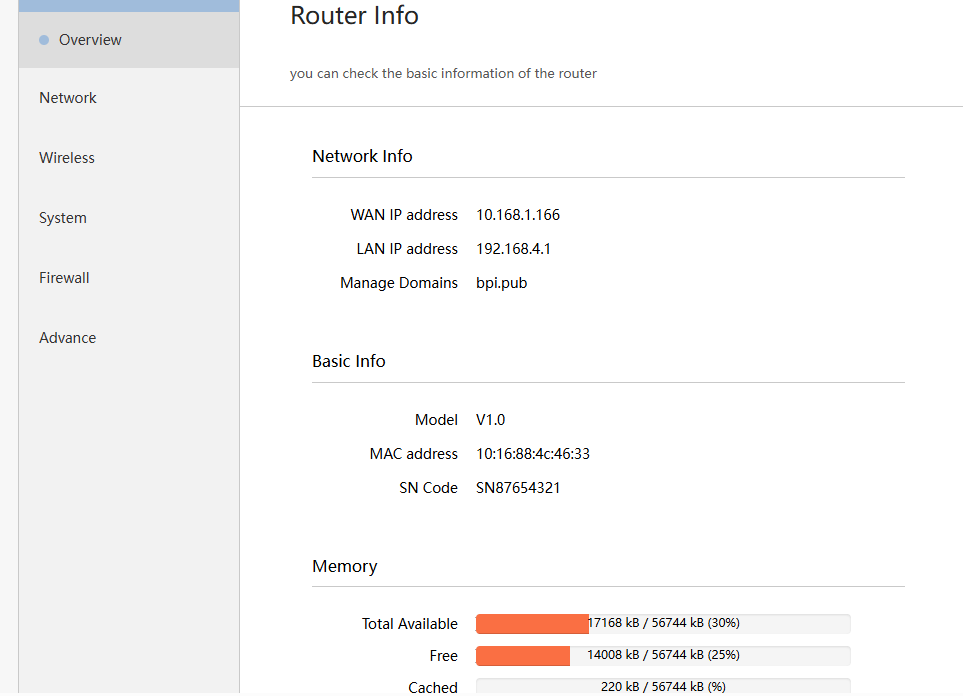 BPI-Wifi5 Router adopts the national silicon Chang chip SF19A2890S +AN8855R (Gigabit switch chip) solution, providing gigabit network interface, 1 gigabit WAN port and 3 gigabit LAN ports, supporting 2.4G and 5G, wireless transmission rate of 1200Mbps; Supports rich software features, providing the ideal high-performance product for small and micro businesses and families.