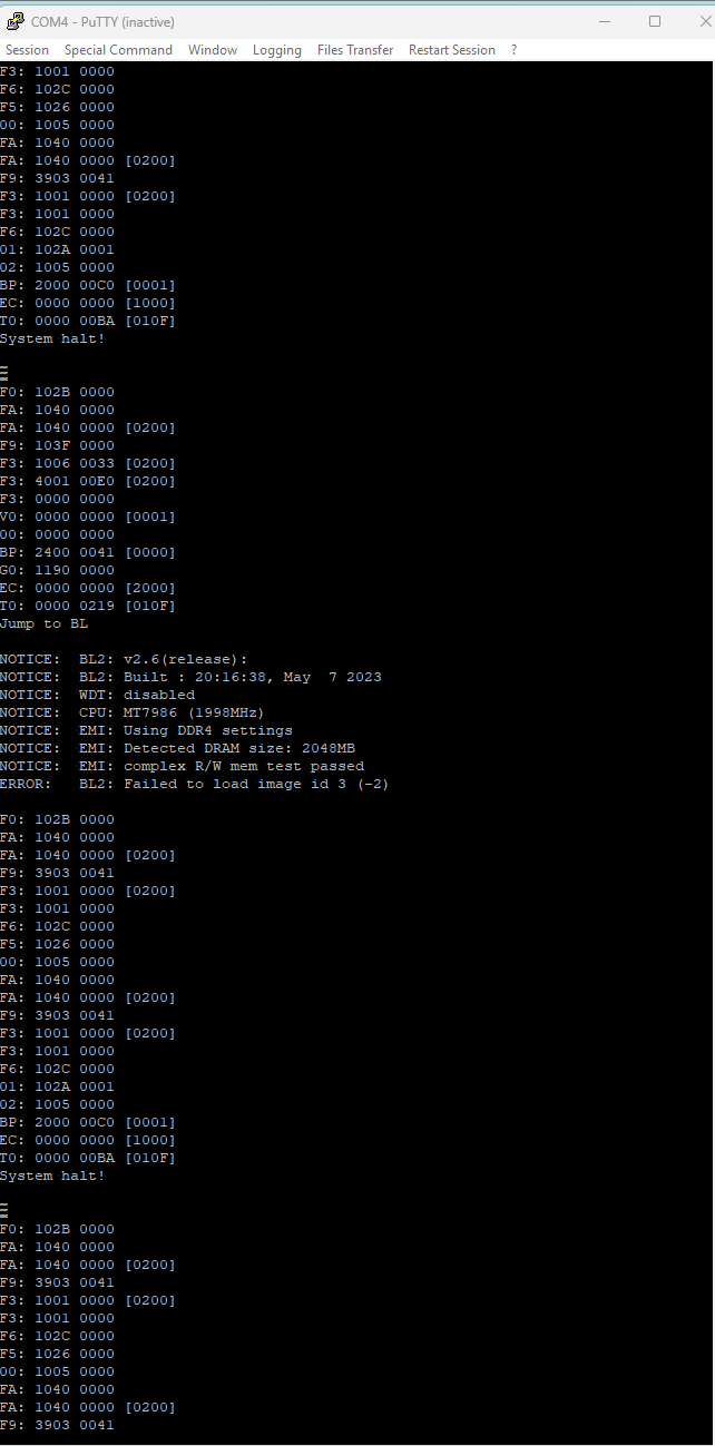 openwrt-24.10.5-mediatek-filogic-bananapi_bpi-r3-mini-initramfs-recovery.itb siguiendo las indicaciones que me dieron. Después de eso, el dispositivo no arranca en absoluto y tampoco carga el menú de inicio. Cada vez que intentamos cargar una versión actualizada, el mismo problema ocurre: el R3 Mini queda inoperativo y no responde de ninguna manera.