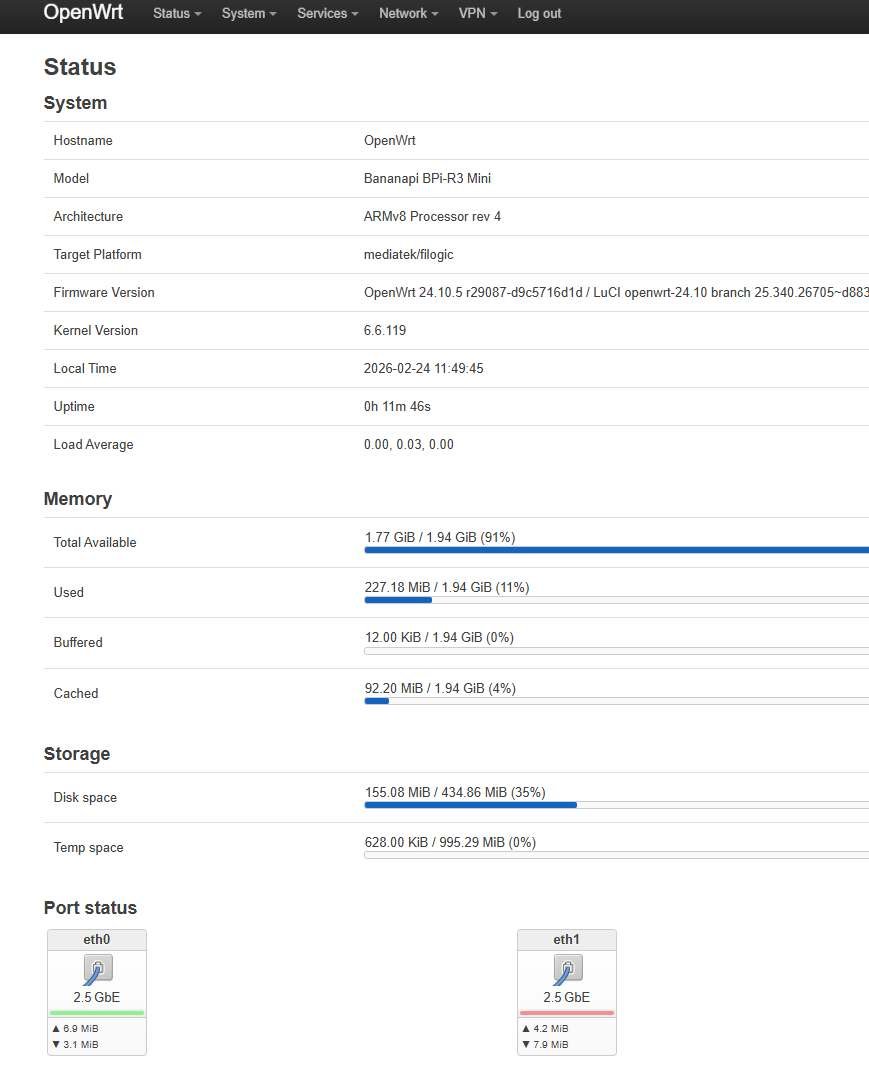 I’m trying to get 2.5Gb/s speed on my BPI-R3 Mini running OpenWrt 24.10.5.