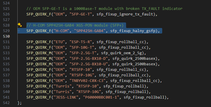 Support for the xgs-pon WAS-110 - H-COM SPP425H- XGS-PON 10GB module is also included