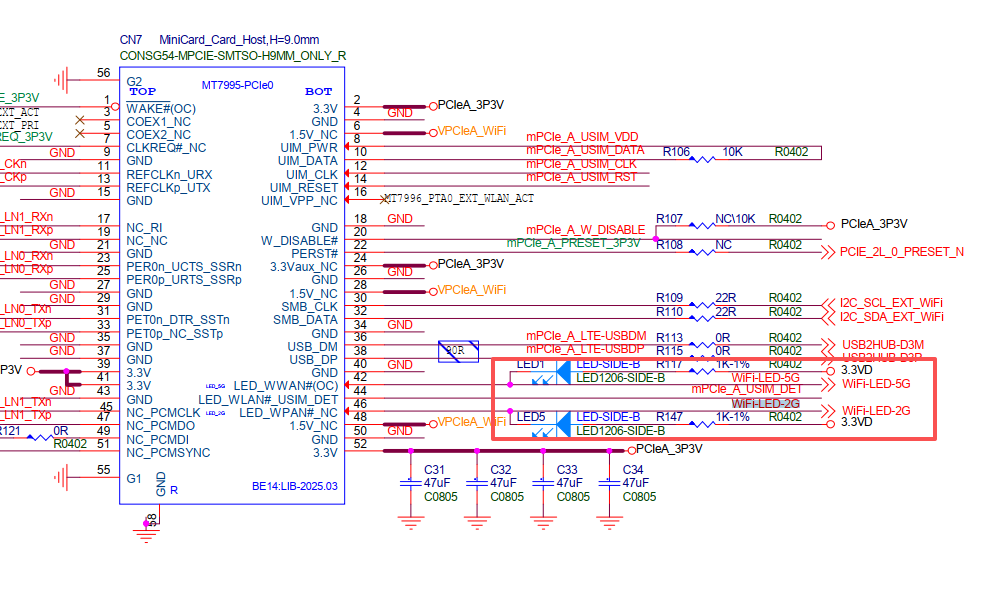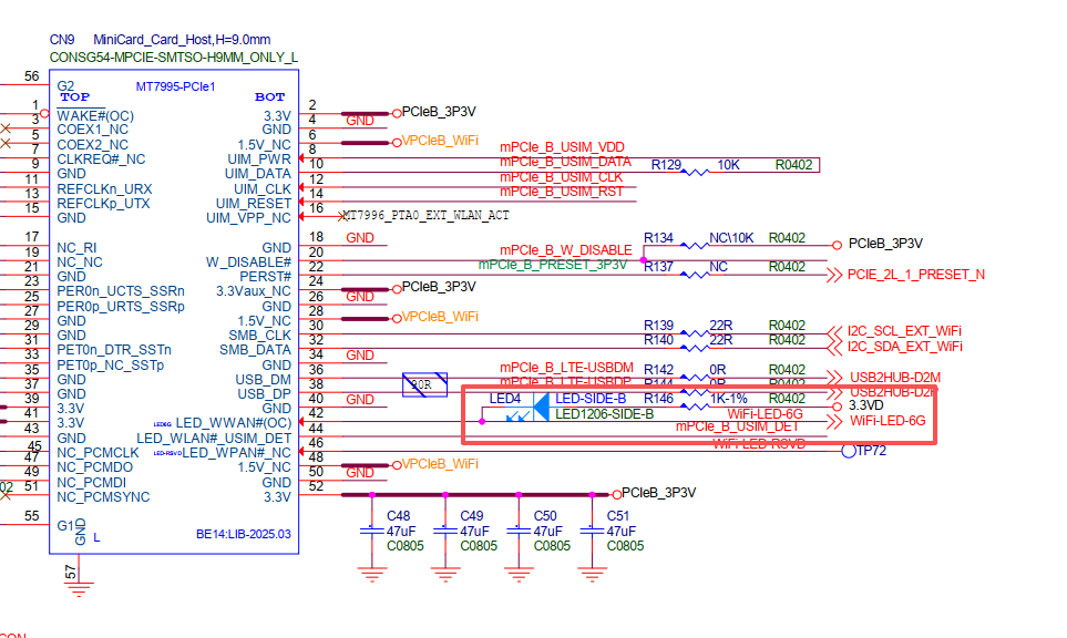 It’s connected to a miniPCIe. I tried using the BE14, but it didn’t work. However, the light flashes when I connect the EC25. Therefore, it is used for runtime checks of certain modules.