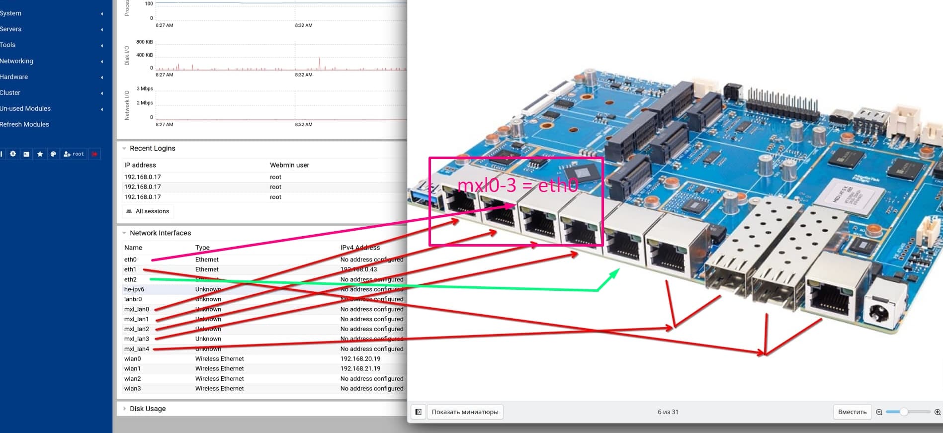 The naming scheme is very confusing, could you explain which port name corresponds to which physical/logic port? Or show it clearly on the diagram. It is more or less clear what mxl_lan is, but what exactly do the eth* interfaces correspond to?
