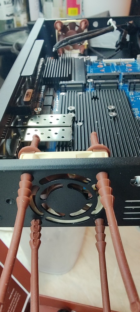 Anyone trying to use the top 80mm fan, be aware that a standard 80x80x25mm won’t fit in height, there’s about 20mm clearance between the stands and the top… (so no noctua… sic…). I’m now looking for a slimmer fan.