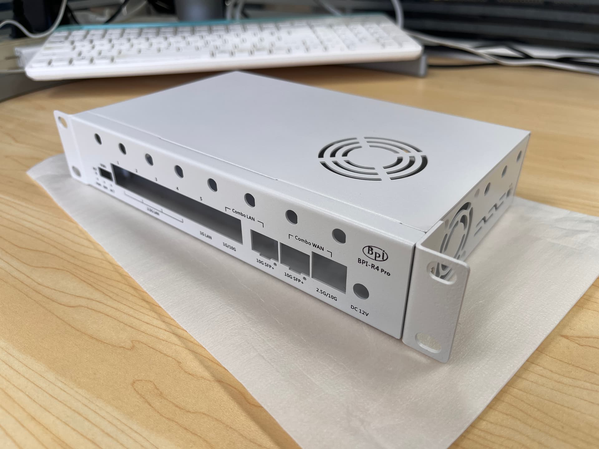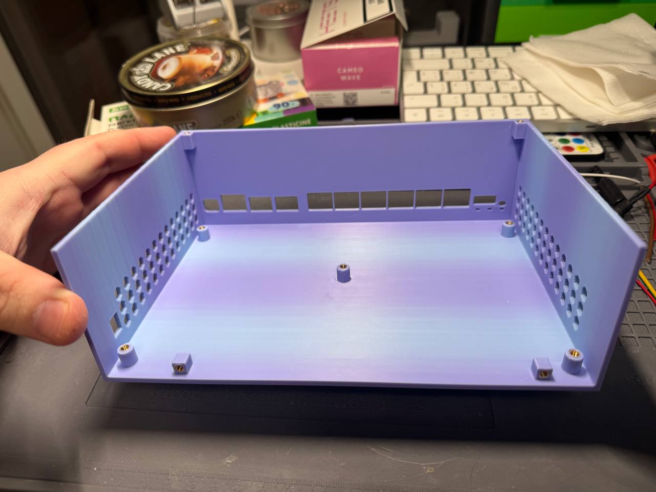 I also decided to make my own case — I printed a prototype yesterday, but since I plan to use SFP modules that generate a lot of heat, I decided to add two 80×80×25 fans.