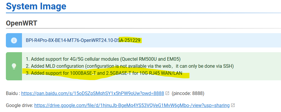 tested the lan 10gbit phy and has same results. wondering if this “Added support for 1000BASE-T and 2.5GBASE-T for 10G RJ45 WAN/LAN” means inband management