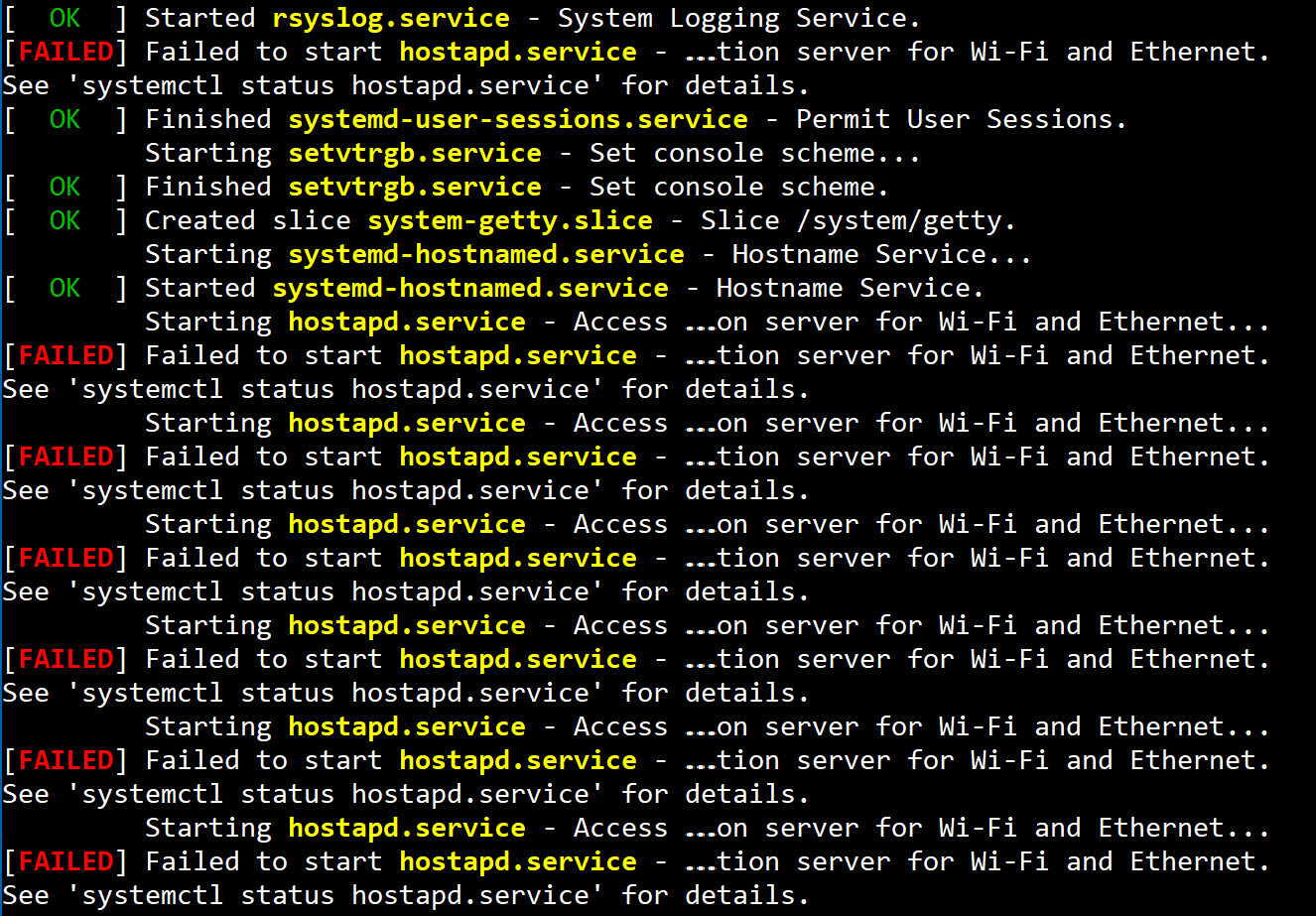 In this case, the system usually spam a lot of FAILED messages of hostapd.service before I can enter the login info: