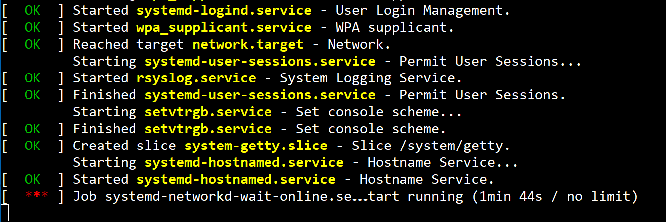 If I stop the hostapd service, it would spend a few minutes stuck in “Job systemd-networkd-wait-online.service …”: