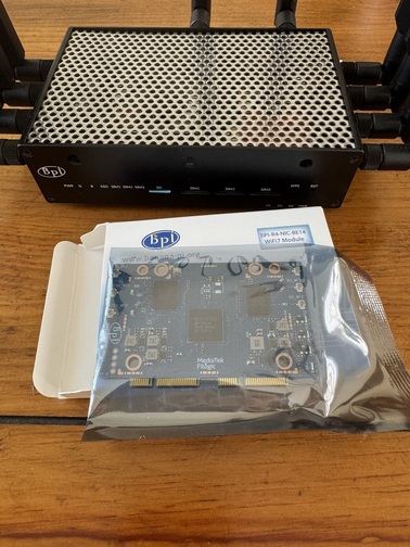 But I see that the BE19000 is much larger than the BE14, so I don’t think it would fit in the box that my BPI-R4 came in.