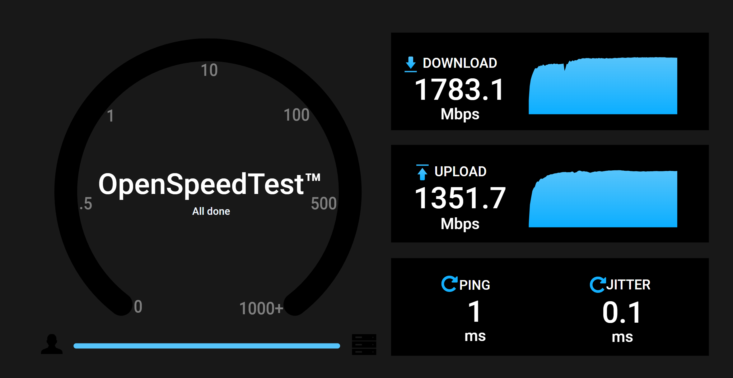 The tests have been performed with a 1000/500 Mb/s GPON connection and an iPhone 15 Pro Max. Wi-Fi in the 5GHz band, channel 36, 80MHz (no DFS), 23dBm (ES). The distance is less than 10 meters with only one separation door (living room->room) in an environment free of interference and with the same snapshot version of OpenWrt. The power adapter used is a Chicony 19V 3.42A (65W).
