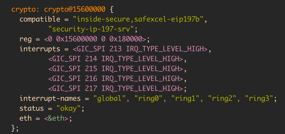 actually think I found the issue the openwrt snapshot dts doesnāt have compatible for āsecurity-ip-197-srvā
